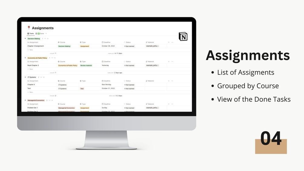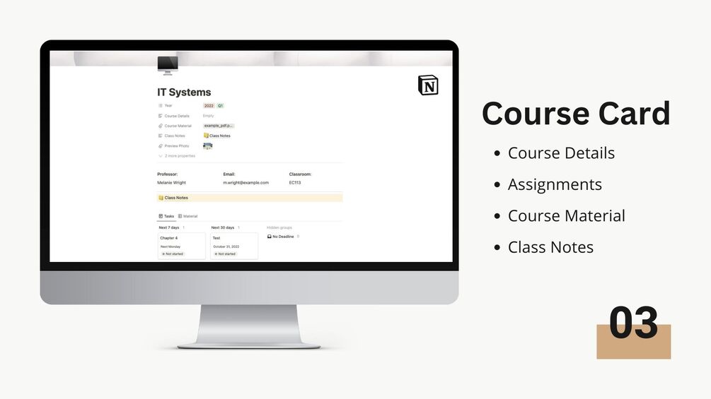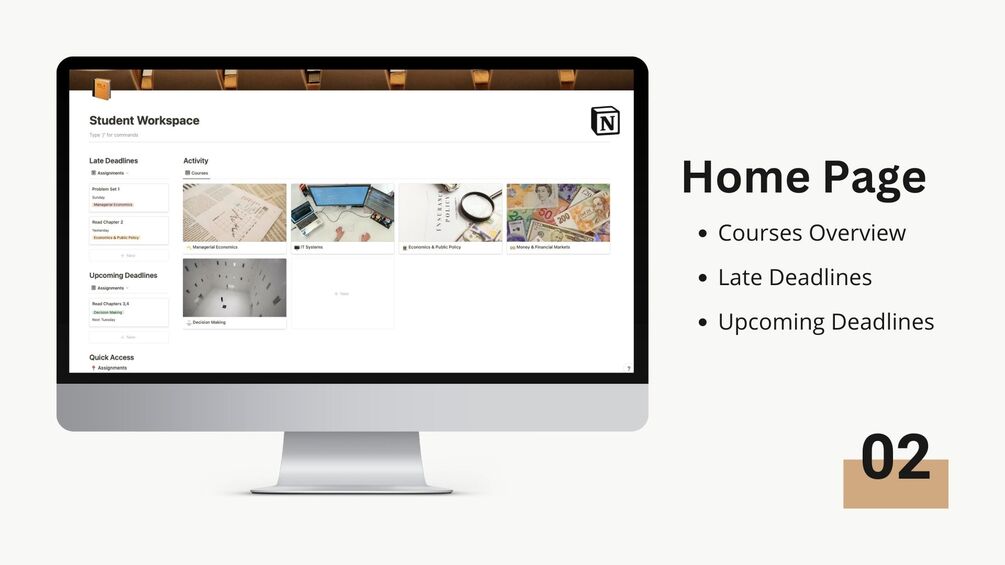 Course details & material, homework assignments, class notes - everything's in this ready-to-use Student Workspace. Easily manage & organize your academic life, and keep track of the deadlines.